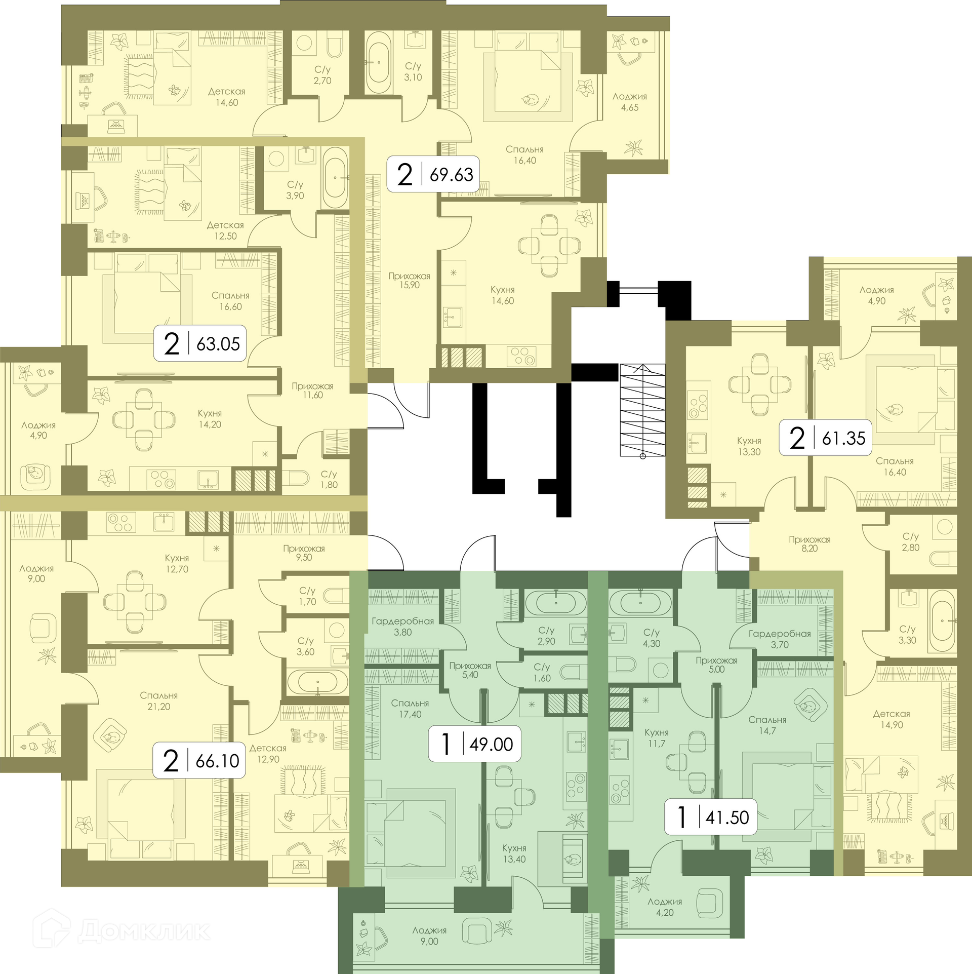 Площади квартир