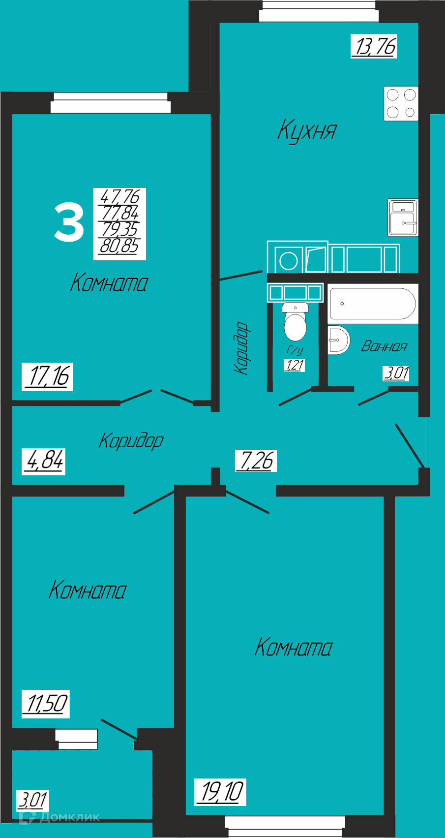 Площади квартир