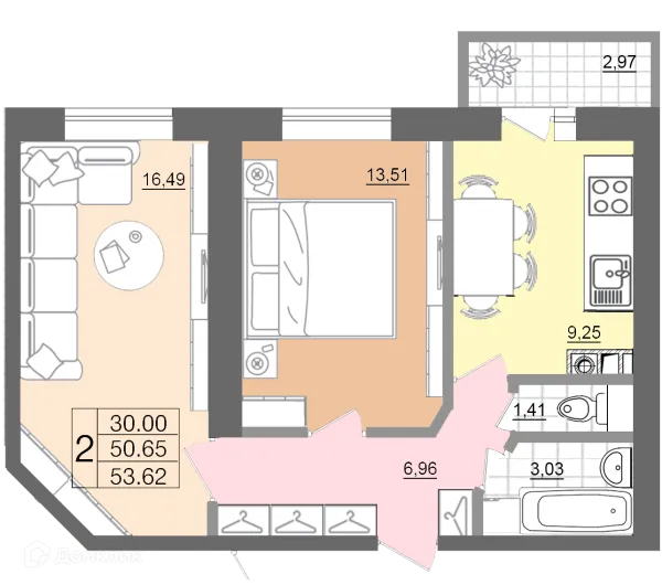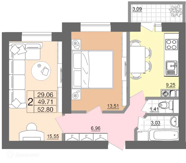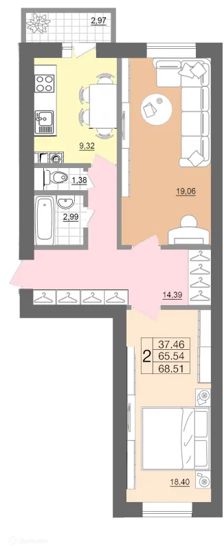 2 комн. квартира в Смоленске в ипотеку от 26 499 руб/месяц