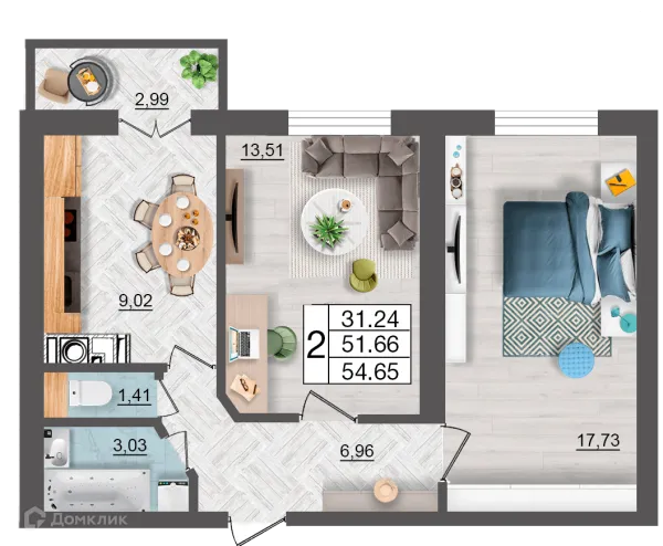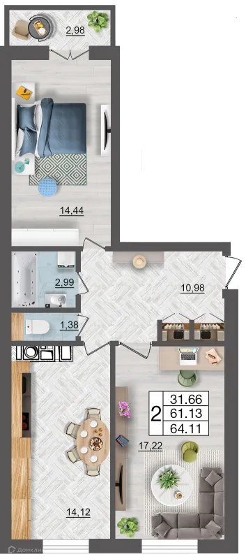 2 комн. квартира в Смоленске в ипотеку от 198 093 руб/месяц