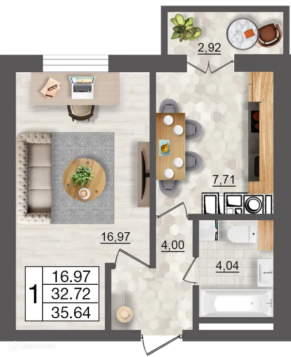 1 комн. квартира в Смоленске в ипотеку от 16 813 руб/месяц