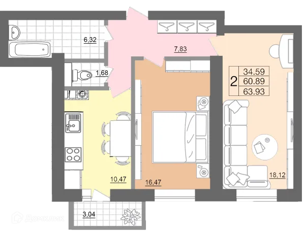 2 комн. квартира в Смоленске в ипотеку от 59 932 руб/месяц