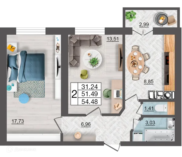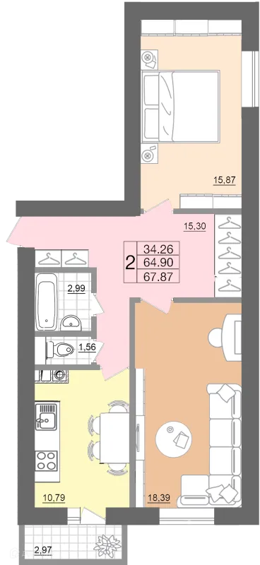 2 комн. квартира в Смоленске в ипотеку от 26 499 руб/месяц