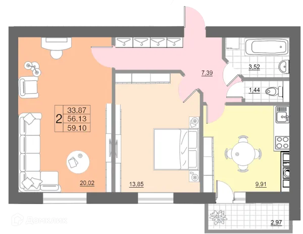 2 комн. квартира в Смоленске в ипотеку от 33 195 руб/месяц