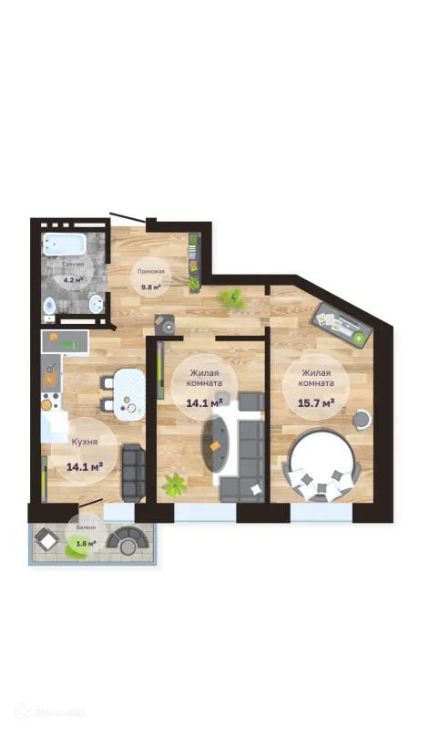 2 комн. квартира в Чите в ипотеку от 74 422 руб/месяц