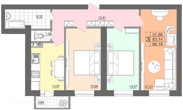 3 комн. квартира в Смоленске в ипотеку от 34 399 руб/месяц