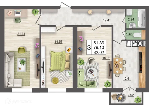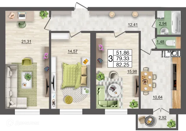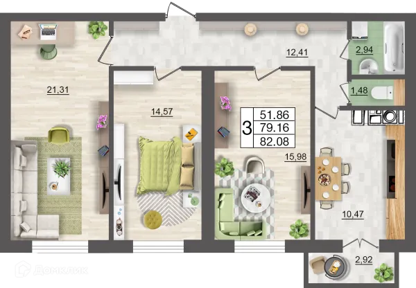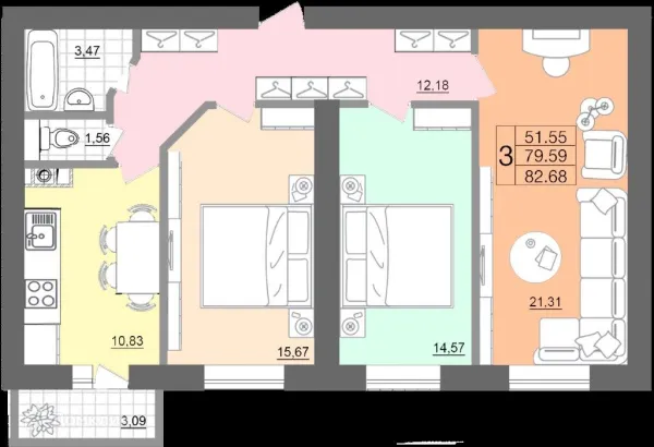 3 комн. квартира в Смоленске в ипотеку от 31 545 руб/месяц