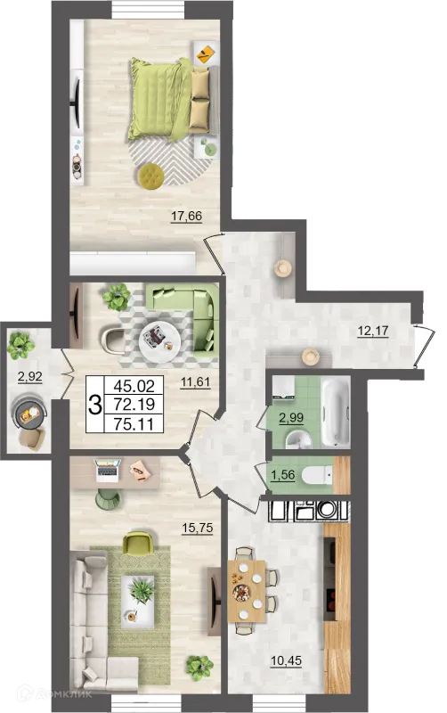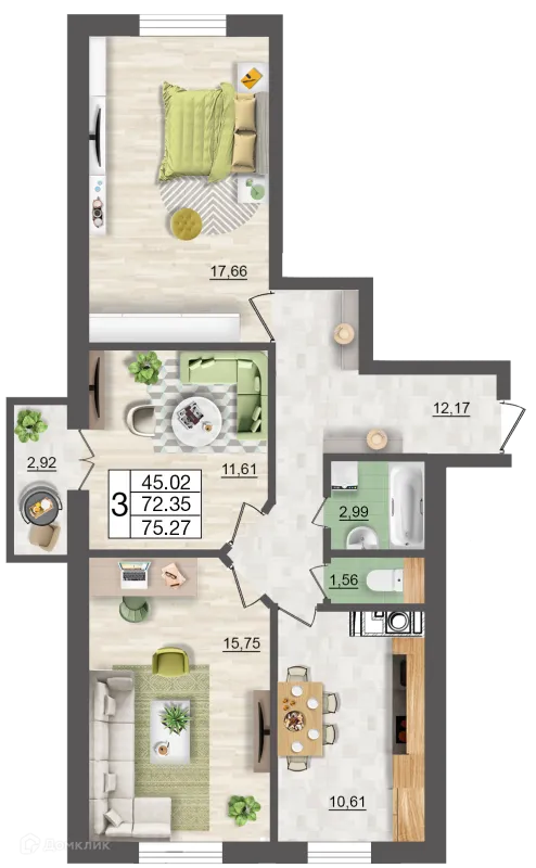 3 комн. квартира в Смоленске в ипотеку от 32 107 руб/месяц