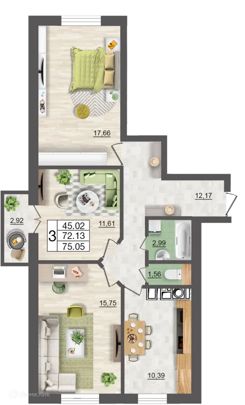 3 комн. квартира в Смоленске в ипотеку от 32 081 руб/месяц