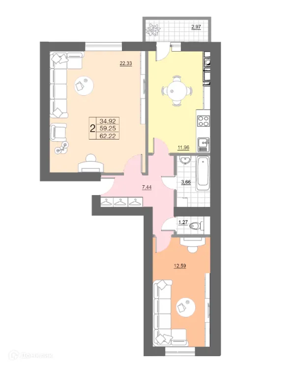 2 комн. квартира в Смоленске в ипотеку от 34 046 руб/месяц