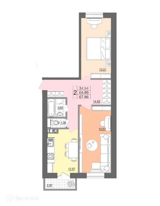 2 комн. квартира в Смоленске в ипотеку от 27 394 руб/месяц