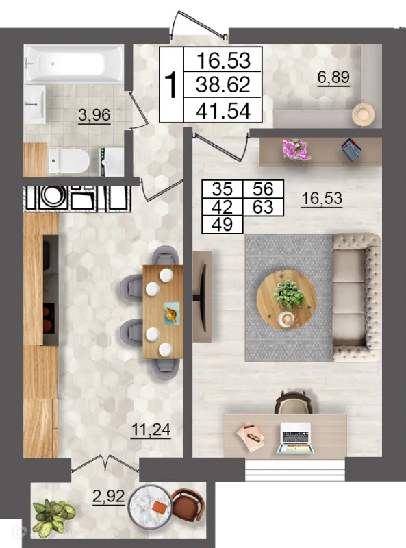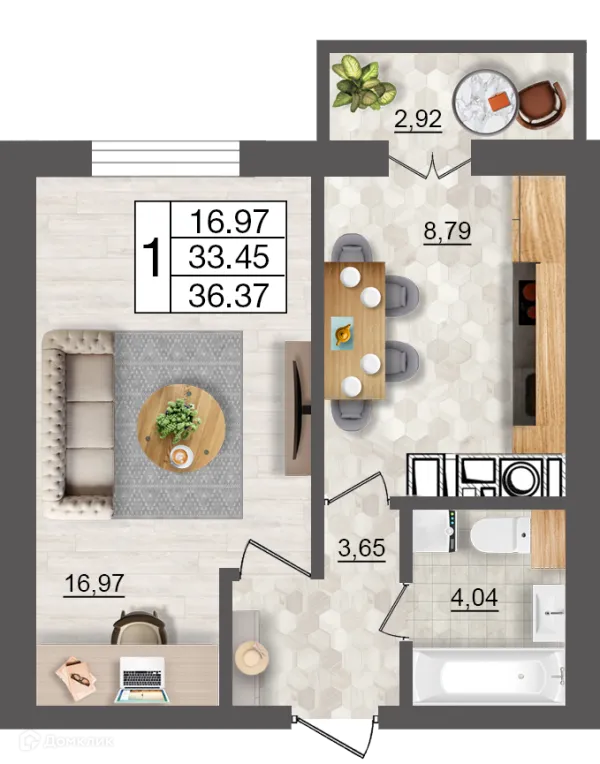 1 комн. квартира в Смоленске в ипотеку от 16 813 руб/месяц