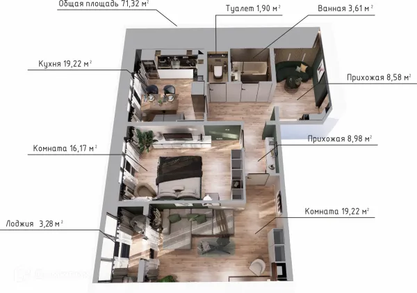 2 комн. квартира в ЖК Зелёная планета на Мира